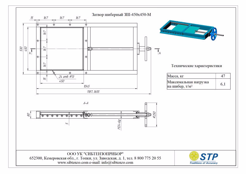 Купить затвор шиберный 3Ш-450х450-М из высокоуглеродистой стали вы можете в нашей компании «Сибтензоприбор»‎.